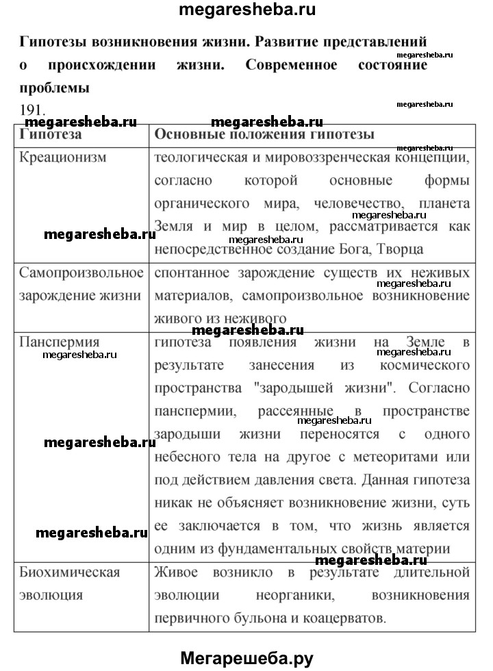 Подробный решебник (ГДЗ) по Биологии за 9 (девятый) класс рабочая тетрадь - готовый ответ номер - 191. Авторы учебника: Пасечник, Швецов. Издательство: Дрофа 2019.