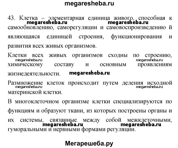 Подробный решебник (ГДЗ) по Биологии за 9 (девятый) класс рабочая тетрадь - готовый ответ номер - 43. Авторы учебника: Пасечник, Швецов. Издательство: Дрофа 2019.
