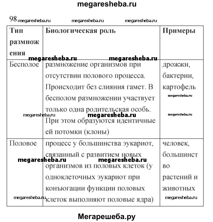 Подробный решебник (ГДЗ) по Биологии за 9 (девятый) класс рабочая тетрадь - готовый ответ номер - 98. Авторы учебника: Пасечник, Швецов. Издательство: Дрофа 2019.