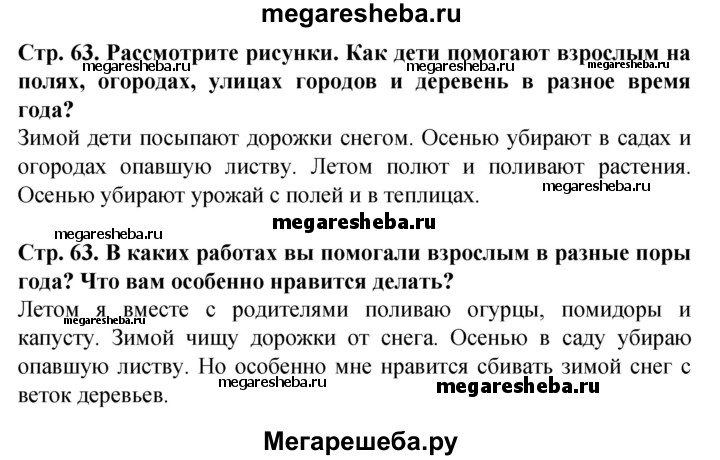 ГДЗ по человеку и миру 1 класс Трафимова страница номер - 63