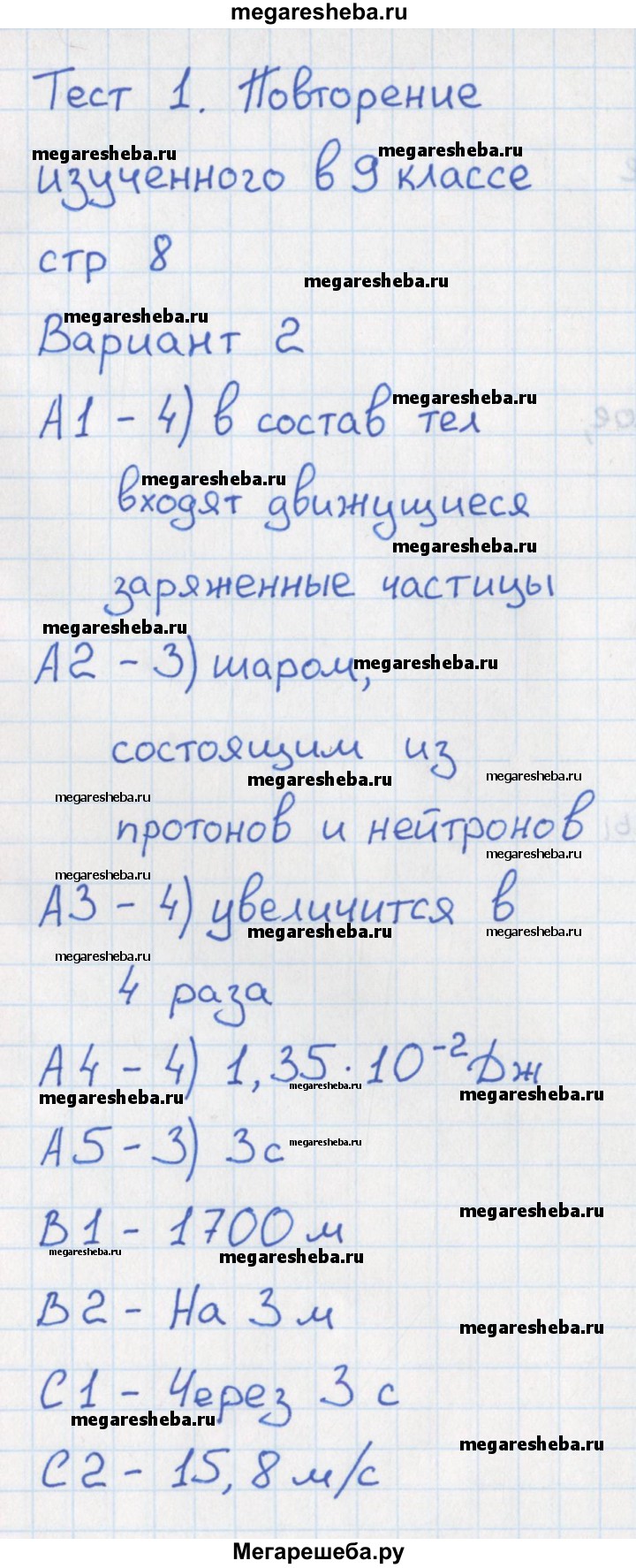Подробный решебник (ГДЗ) по Физике за 10 (десятый) класс контрольно-измерительные материалы - готовый ответ тест 1. вариант - 2. Авторы учебника: Зорин. Издательство: ВАКО 2018.
