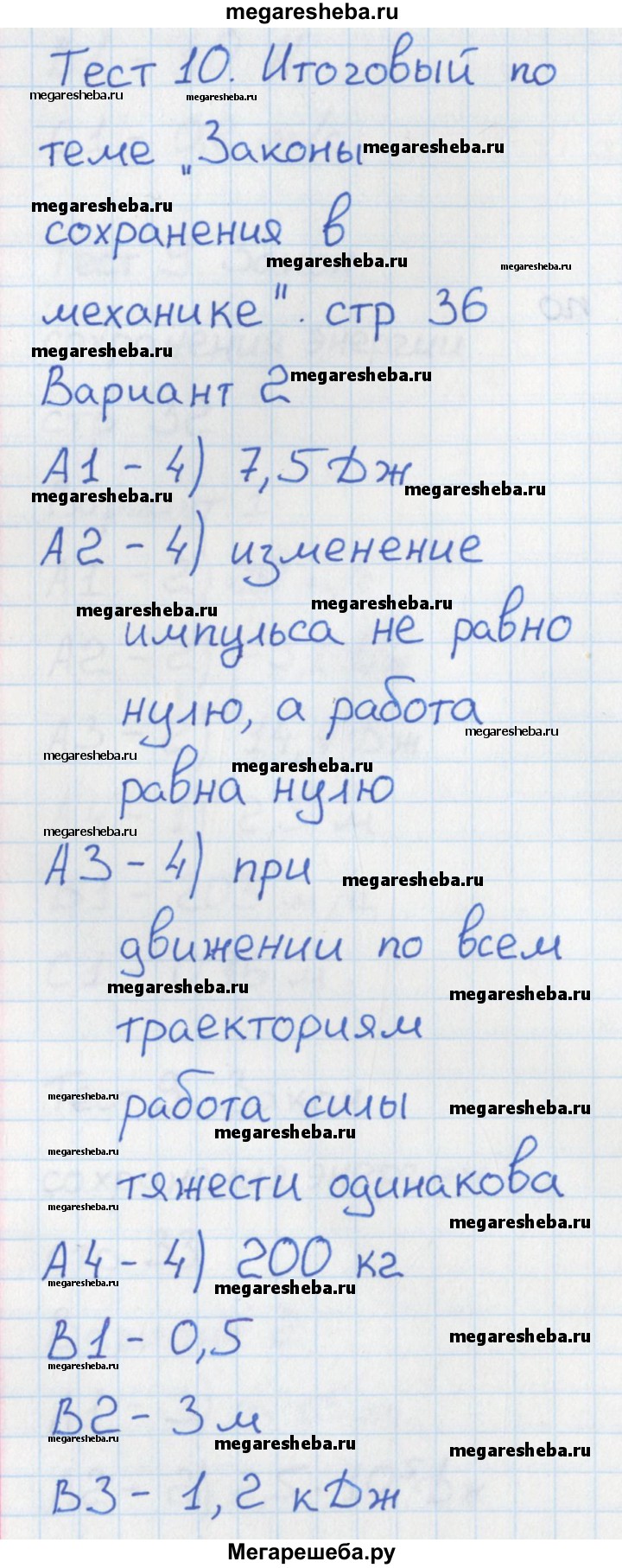 Подробный решебник (ГДЗ) по Физике за 10 (десятый) класс контрольно-измерительные материалы - готовый ответ тест 10. вариант - 2. Авторы учебника: Зорин. Издательство: ВАКО 2018.