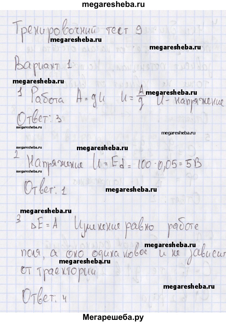 ГДЗ по физике 10 класс Пурышева рабочая тетрадь Базовый уровень тесты тест 9. вариант - 1
