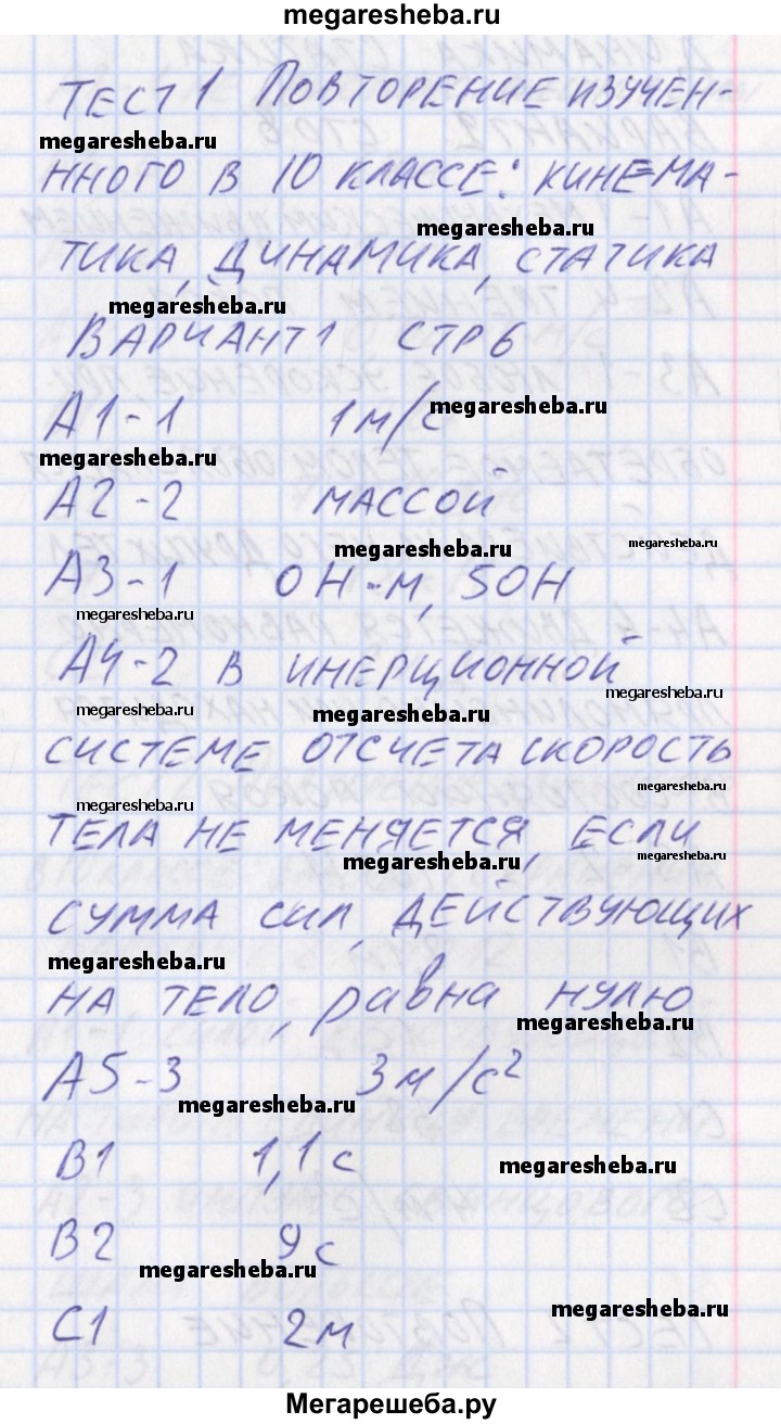 Подробный решебник (ГДЗ) по Физике за 11 (одиннадцатый) класс контрольно-измерительные материалы - готовый ответ тест 1. вариант - 1. Авторы учебника: Зорин. Издательство: ВАКО 2017.