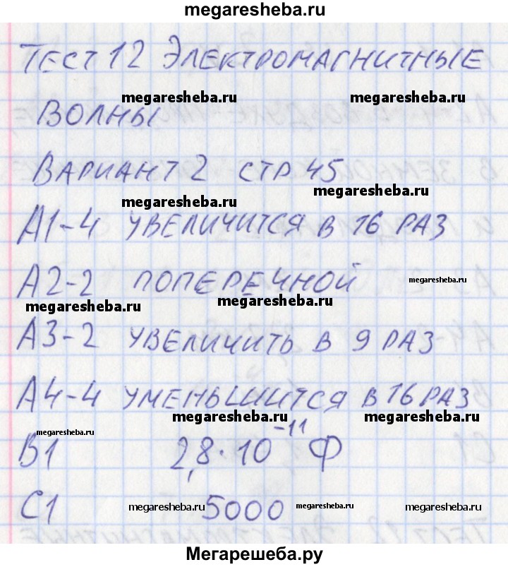 Подробный решебник (ГДЗ) по Физике за 11 (одиннадцатый) класс контрольно-измерительные материалы - готовый ответ тест 12. вариант - 2. Авторы учебника: Зорин. Издательство: ВАКО 2017.