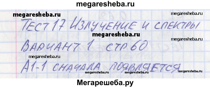 Подробный решебник (ГДЗ) по Физике за 11 (одиннадцатый) класс контрольно-измерительные материалы - готовый ответ тест 17. вариант - 1. Авторы учебника: Зорин. Издательство: ВАКО 2017.