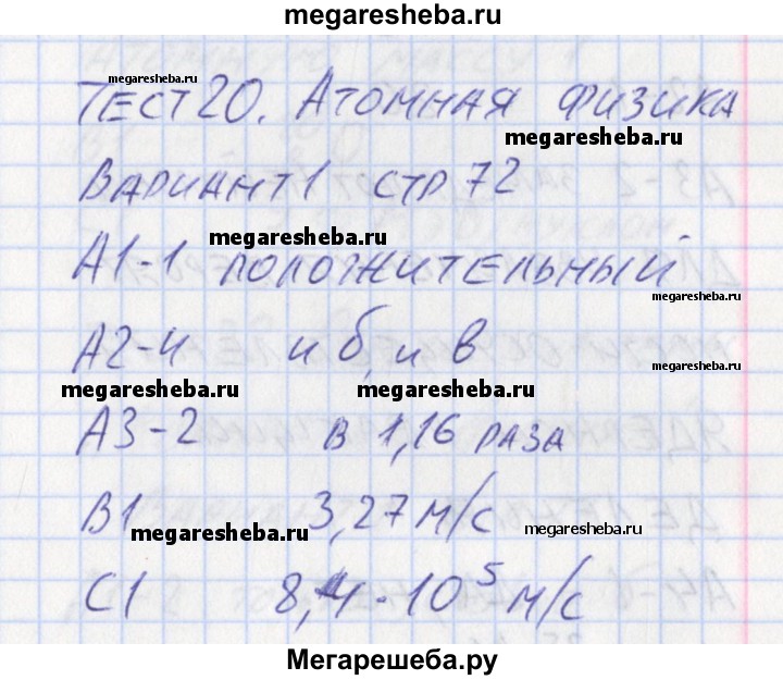Подробный решебник (ГДЗ) по Физике за 11 (одиннадцатый) класс контрольно-измерительные материалы - готовый ответ тест 20. вариант - 1. Авторы учебника: Зорин. Издательство: ВАКО 2017.