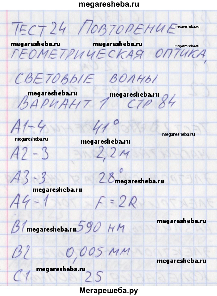 Подробный решебник (ГДЗ) по Физике за 11 (одиннадцатый) класс контрольно-измерительные материалы - готовый ответ тест 24. вариант - 1. Авторы учебника: Зорин. Издательство: ВАКО 2017.
