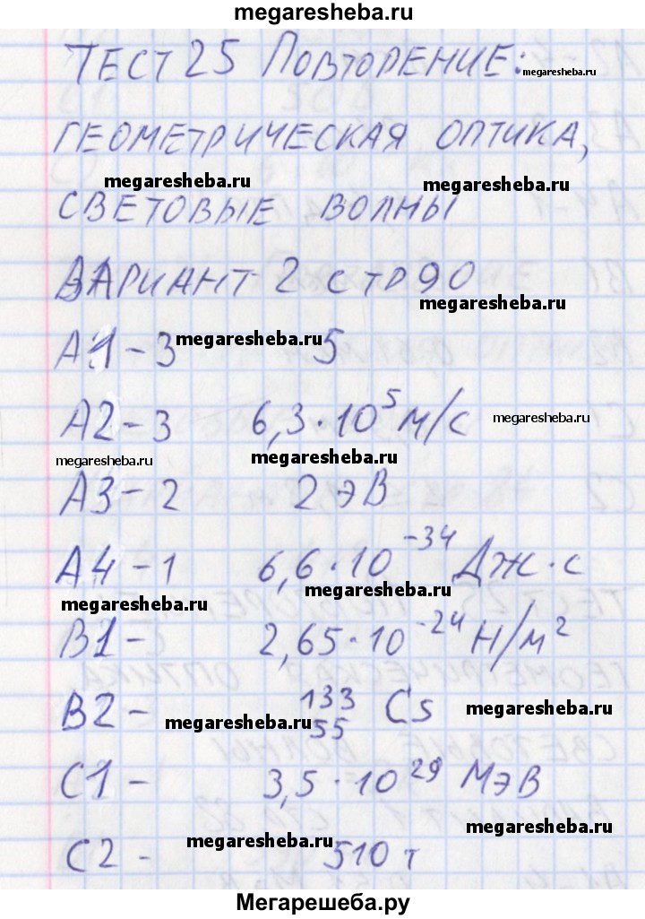 Подробный решебник (ГДЗ) по Физике за 11 (одиннадцатый) класс контрольно-измерительные материалы - готовый ответ тест 25. вариант - 2. Авторы учебника: Зорин. Издательство: ВАКО 2017.