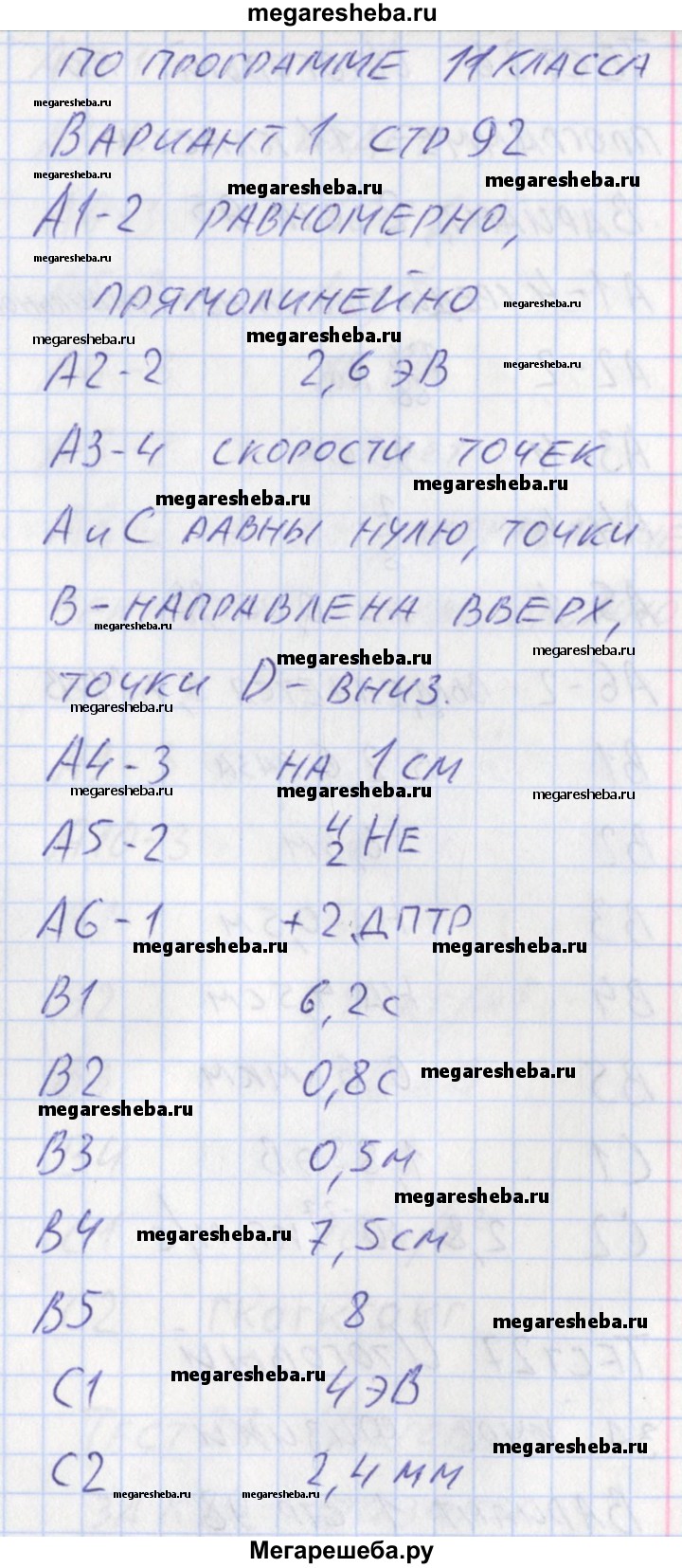 Подробный решебник (ГДЗ) по Физике за 11 (одиннадцатый) класс контрольно-измерительные материалы - готовый ответ тест 26. вариант - 1. Авторы учебника: Зорин. Издательство: ВАКО 2017.