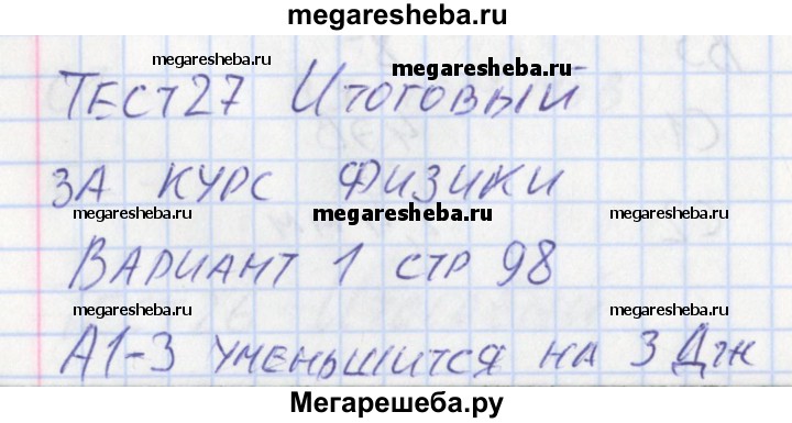 Подробный решебник (ГДЗ) по Физике за 11 (одиннадцатый) класс контрольно-измерительные материалы - готовый ответ тест 27. вариант - 1. Авторы учебника: Зорин. Издательство: ВАКО 2017.