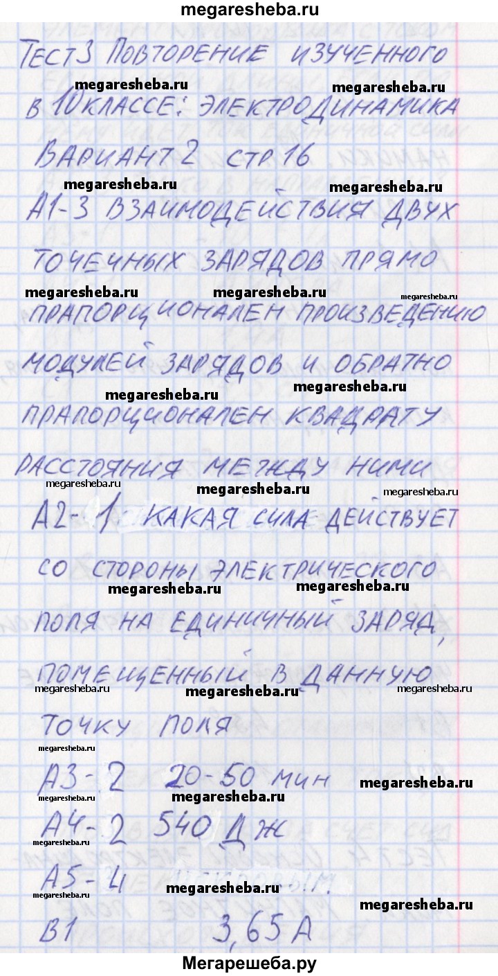 Подробный решебник (ГДЗ) по Физике за 11 (одиннадцатый) класс контрольно-измерительные материалы - готовый ответ тест 3. вариант - 2. Авторы учебника: Зорин. Издательство: ВАКО 2017.