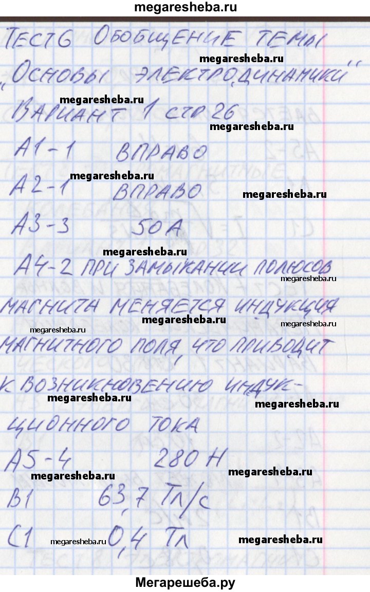Подробный решебник (ГДЗ) по Физике за 11 (одиннадцатый) класс контрольно-измерительные материалы - готовый ответ тест 6. вариант - 1. Авторы учебника: Зорин. Издательство: ВАКО 2017.