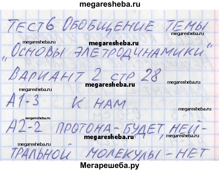 Подробный решебник (ГДЗ) по Физике за 11 (одиннадцатый) класс контрольно-измерительные материалы - готовый ответ тест 6. вариант - 2. Авторы учебника: Зорин. Издательство: ВАКО 2017.