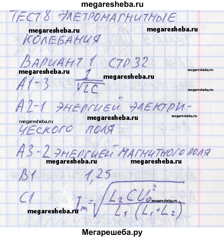 Подробный решебник (ГДЗ) по Физике за 11 (одиннадцатый) класс контрольно-измерительные материалы - готовый ответ тест 8. вариант - 1. Авторы учебника: Зорин. Издательство: ВАКО 2017.