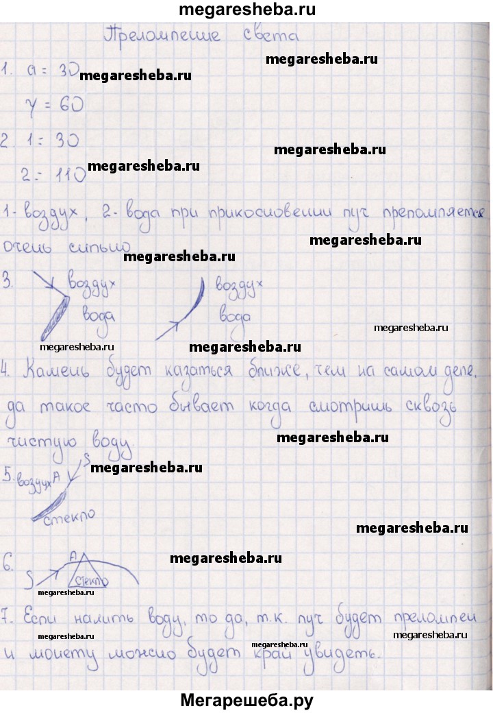 ГДЗ по физике 6 класс Гуревич рабочая тетрадь тема - Преломление света