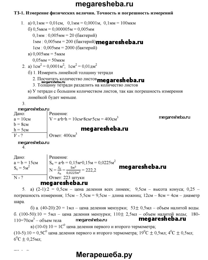 ГДЗ по физике 7 класс Марон дидактические материалы Базовый уровень тренировочное задание - 1