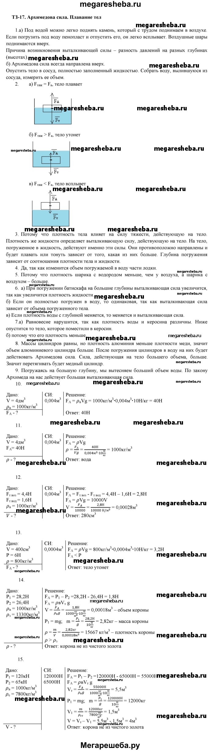 Подробный решебник (ГДЗ) по Физике за 7 (седьмой) класс дидактические материалы - готовый ответ тренировочное задание - 17. Авторы учебника: Марон, Марон, Базовый уровень. Издательство: Дрофа 2017-2024.