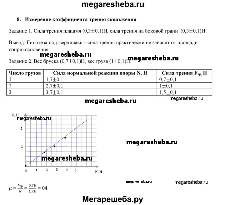 Подробный решебник (ГДЗ) по Физике за 7 (седьмой) класс - готовый ответ лабораторная работа - 8. Авторы учебника: Генденштейн, Булатова, Корнильев, Кошкина. Издательство: Бином 2017.