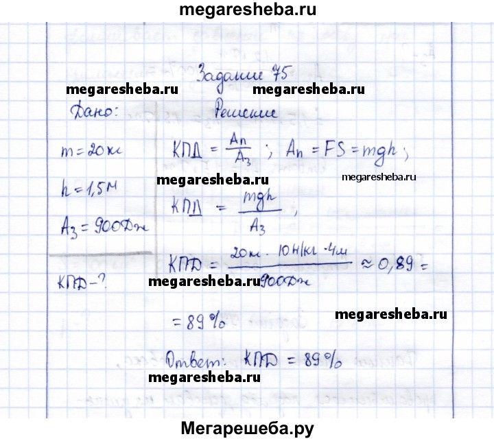 Подробный решебник (ГДЗ) по Физике за 7 (седьмой) класс - готовый ответ задача - 75. Авторы учебника: Громов, Родина. Издательство: Просвещение 2015-2021.