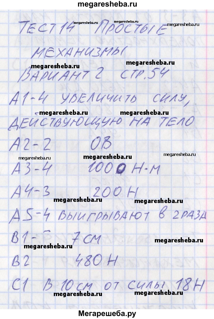 Подробный решебник (ГДЗ) по Физике за 7 (седьмой) класс контрольно-измерительные материалы - готовый ответ 14 тест. вариант - 2. Авторы учебника: Зорин. Издательство: ВАКО 2017.