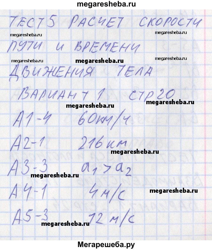 Подробный решебник (ГДЗ) по Физике за 7 (седьмой) класс контрольно-измерительные материалы - готовый ответ 5 тест. вариант - 1. Авторы учебника: Зорин. Издательство: ВАКО 2017.