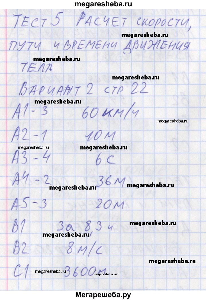 Подробный решебник (ГДЗ) по Физике за 7 (седьмой) класс контрольно-измерительные материалы - готовый ответ 5 тест. вариант - 2. Авторы учебника: Зорин. Издательство: ВАКО 2017.