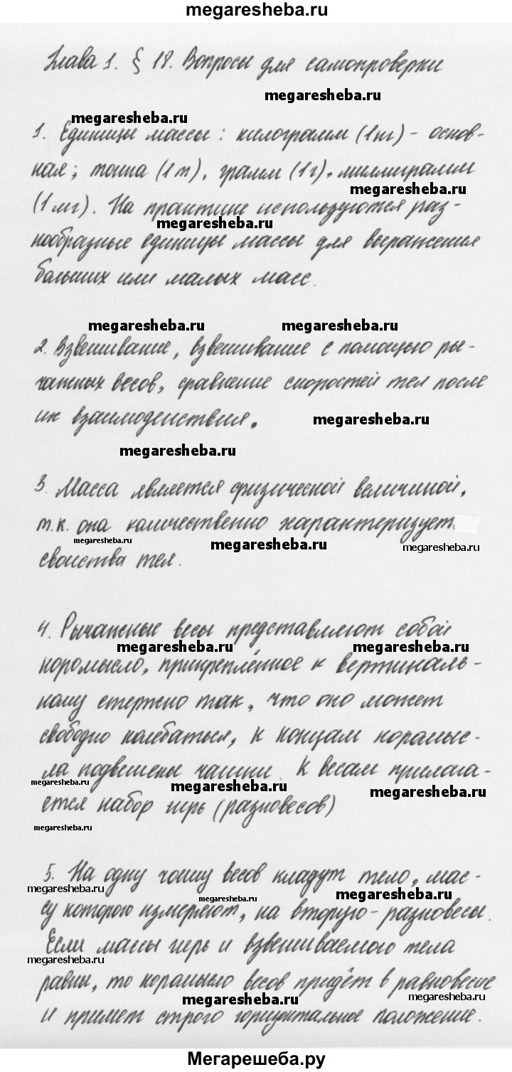 1. Назовите единицы массы. Объясните, почему их несколько. 2. Какие способы измерения массы вы знаете? 3. Почему масса является физической величиной? 4. Что собой представляют учебные рычажные весы? 5. Как определить массу тела при помощи весов? 6. Всегда ли можно определить массу тела с помощью весов? Ответ поясните.