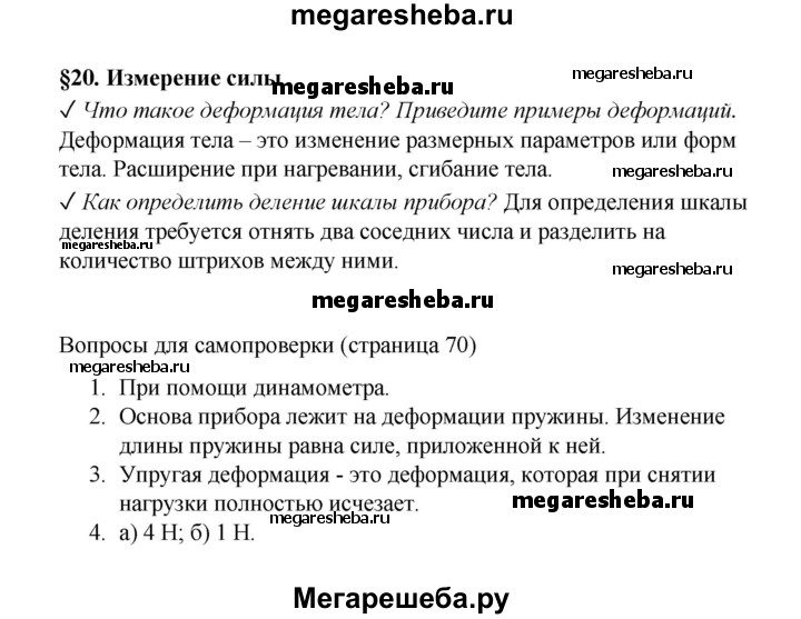 ГДЗ по физике 7 класс Пурышева вопросы - §20