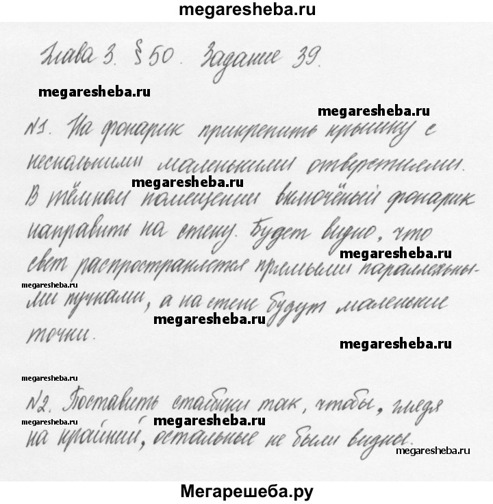 Проведите дома опыт, доказывающий, что свет распространяется прямолинейно. Опишите опыт. 2. Как, используя прямолинейность распространения света, поставить три столбика по прямой линии?