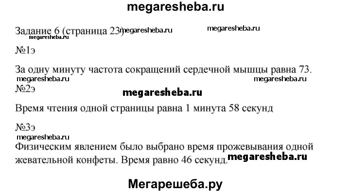 Измерьте частоту своего пульса, которая равна числу сокращений сердечной мышцы за 1 минуту. 2э. Определите время чтения вами одной страницы текста. Зэ. Определите время протекания любого выбранного вами физического явления.