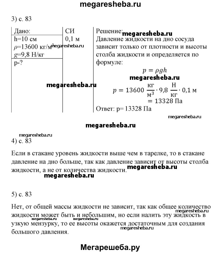 Подробный решебник (ГДЗ) по Физике за 7 (седьмой) класс рабочая тетрадь - готовый ответ страница - 83. Авторы учебника: Касьянов, Дмитриева. Издательство: Дрофа 2017.