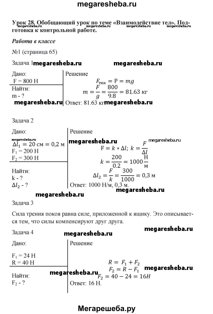 ГДЗ по физике 7 класс Минькова рабочая тетрадь урок - 28