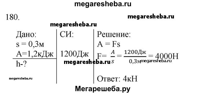 Подробный решебник (ГДЗ) по Физике за 7 (седьмой) класс рабочая тетрадь - готовый ответ упражнение - 180. Авторы учебника: Пурышева, Важеевска. Издательство: Дрофа 2018.