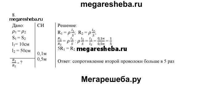 ГДЗ по физике 8 класс Марон дидактические материалы Базовый уровень тренировочные задания ТЗ-10 - 8