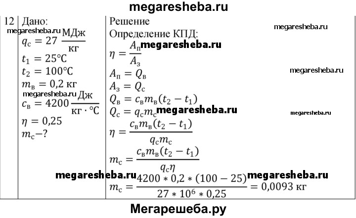 ГДЗ по физике 8 класс Марон дидактические материалы Базовый уровень тренировочные задания ТЗ-5 - 12