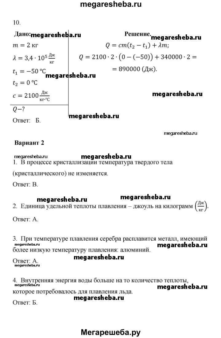 ГДЗ по физике 8 класс Марон дидактические материалы Базовый уровень тест - 3