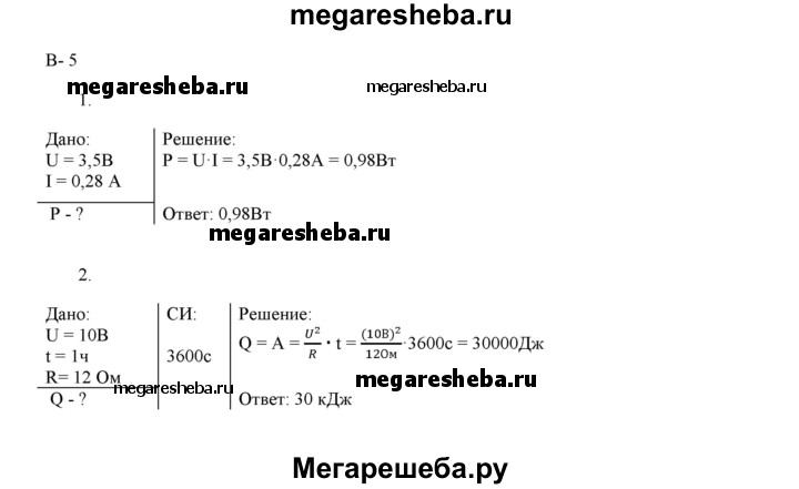 ГДЗ по физике 8 класс Марон дидактические материалы Базовый уровень самостоятельные работы СР-10. вариант - 5