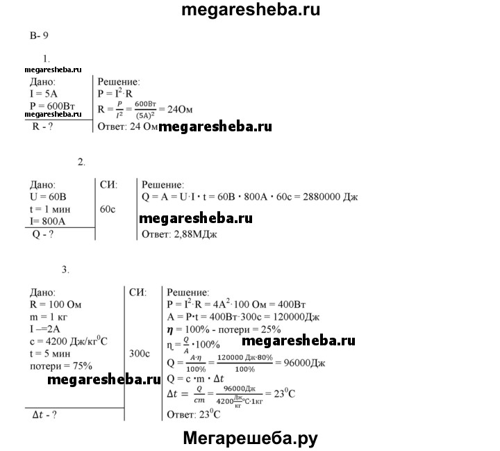 ГДЗ по физике 8 класс Марон дидактические материалы Базовый уровень самостоятельные работы СР-10. вариант - 9