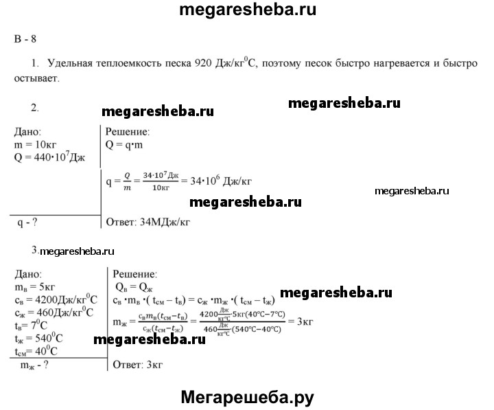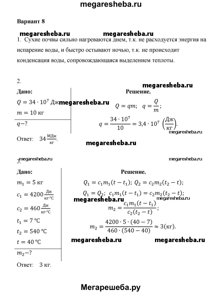 ГДЗ по физике 8 класс Марон дидактические материалы Базовый уровень самостоятельные работы СР-3. вариант - 8