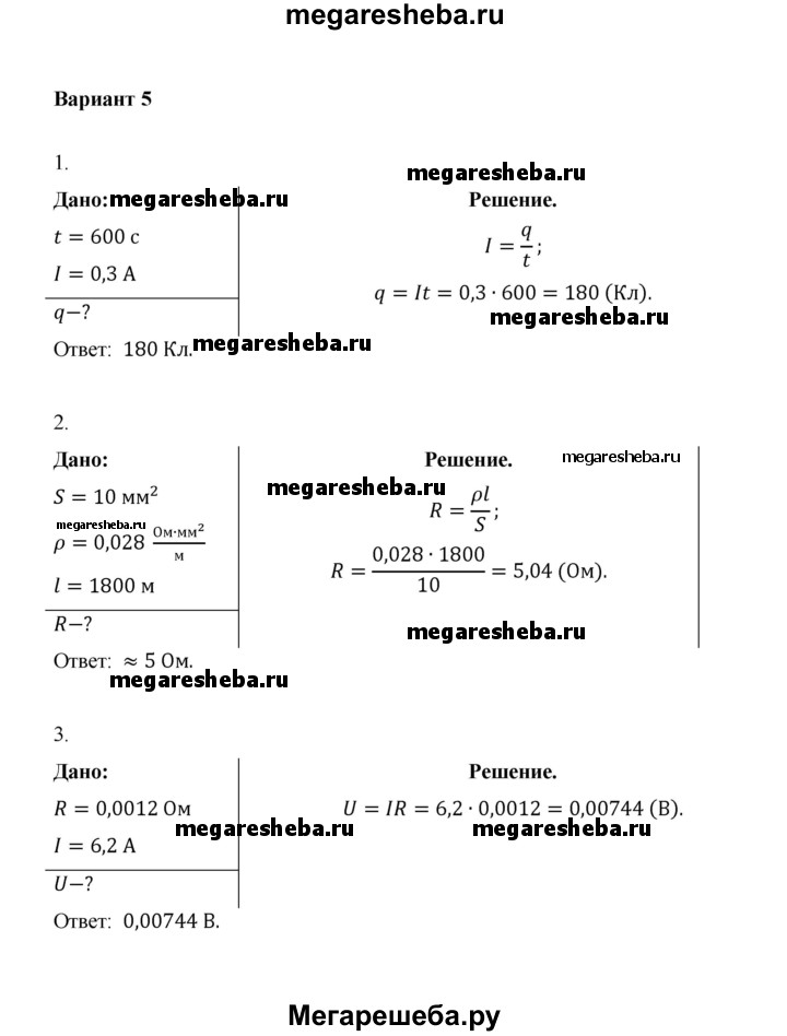ГДЗ по физике 8 класс Марон дидактические материалы Базовый уровень самостоятельные работы СР-8. вариант - 5