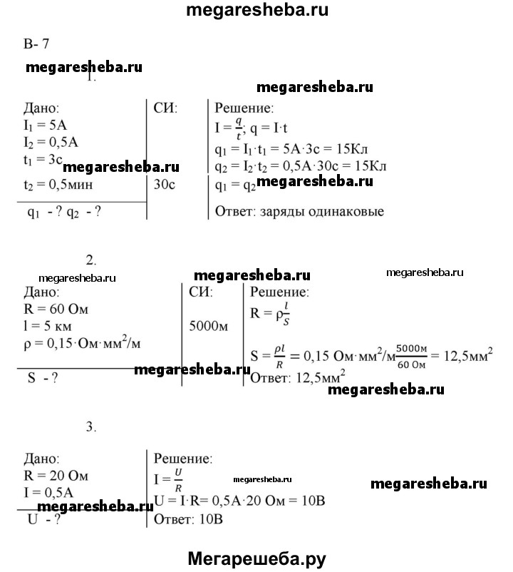 ГДЗ по физике 8 класс Марон дидактические материалы Базовый уровень самостоятельные работы СР-8. вариант - 7