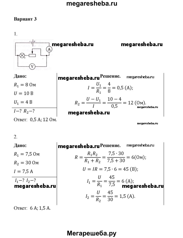ГДЗ по физике 8 класс Марон дидактические материалы Базовый уровень самостоятельные работы СР-9. вариант - 3