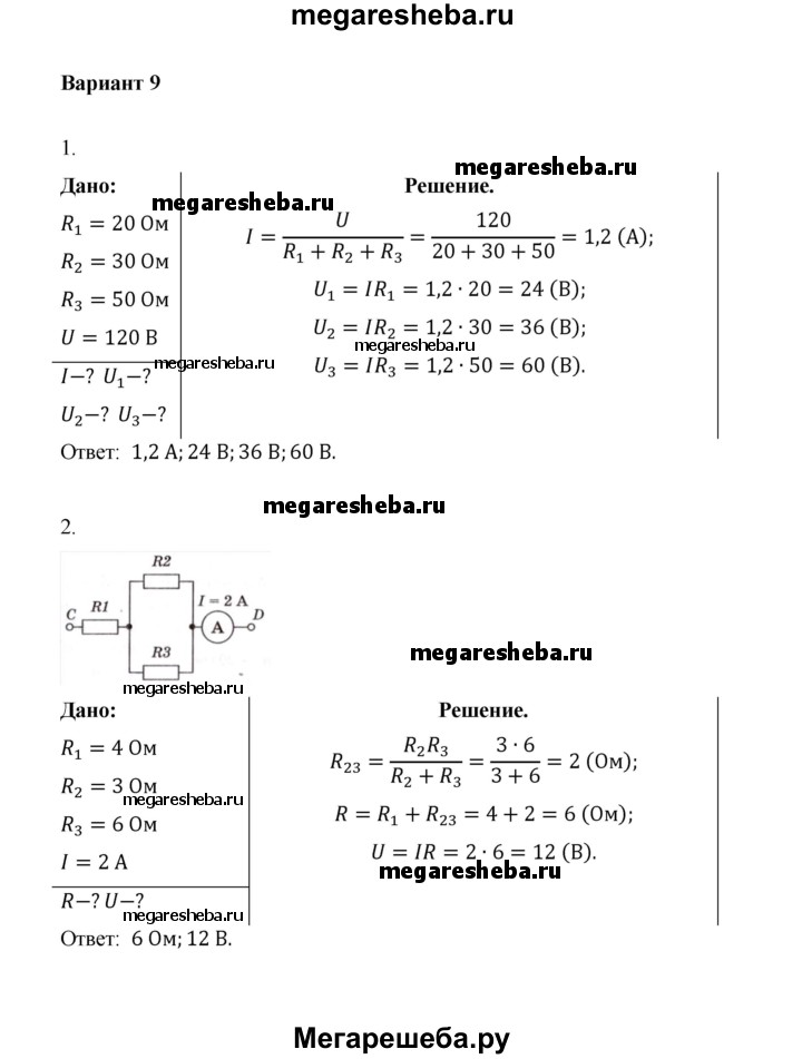 ГДЗ по физике 8 класс Марон дидактические материалы Базовый уровень самостоятельные работы СР-9. вариант - 9