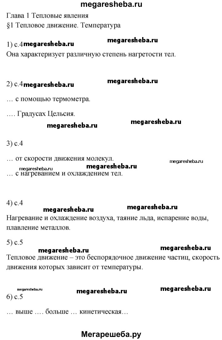 Подробный решебник (ГДЗ) по Физике за 8 (восьмой) класс рабочая тетрадь, тестовые задания ЕГЭ - готовый ответ глава 1 § - 1. Авторы учебника: Касьянов, Дмитриева. Издательство: Дрофа 2017.