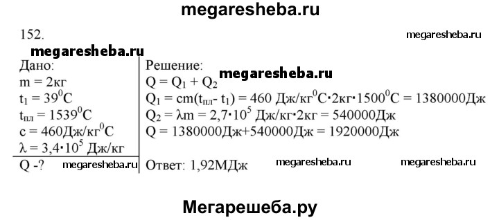 Подробный решебник (ГДЗ) по Физике за 8 (восьмой) класс рабочая тетрадь - готовый ответ упражнение - 152. Авторы учебника: Пурышева, Важеевская. Издательство: Дрофа 2015.