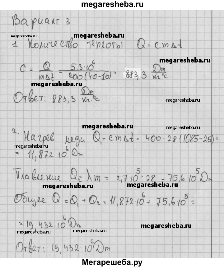 ГДЗ по физике 8 класс Марон самостоятельные и контрольные работы контрольные работы КР-1. вариант - 3