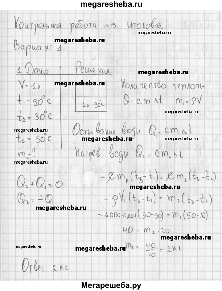ГДЗ по физике 8 класс Марон самостоятельные и контрольные работы контрольные работы КР-5. вариант - 1