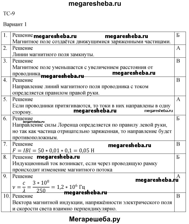 Подробный решебник (ГДЗ) по Физике за 9 (девятый) класс дидактические материалы - готовый ответ тесты для самоконтроля ТС-9 - Вариант 1. Авторы учебника: Марон, Марон, Базовый уровень. Издательство: Дрофа 2016-2024.
