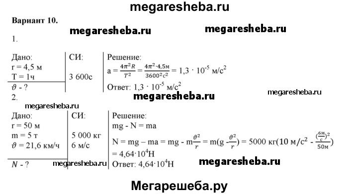 ГДЗ по физике 9 класс Марон дидактические материалы Базовый уровень самостоятельные работы СР-10 - Вариант 10